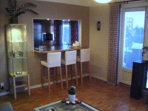 Hallen och baren sett från vardagsrummet.