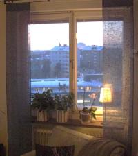 Lite utsikt från ena vardagsrumsfönstret. Globen skymtas mellan husen.