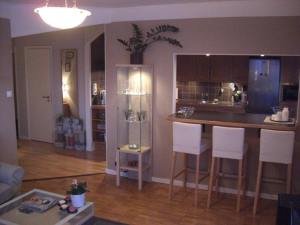 Hallen och baren igen, sett mer från mitten av vardagsrummet.