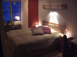 I sovrummet har det satts ny väggpanel och lagts nytt golv.